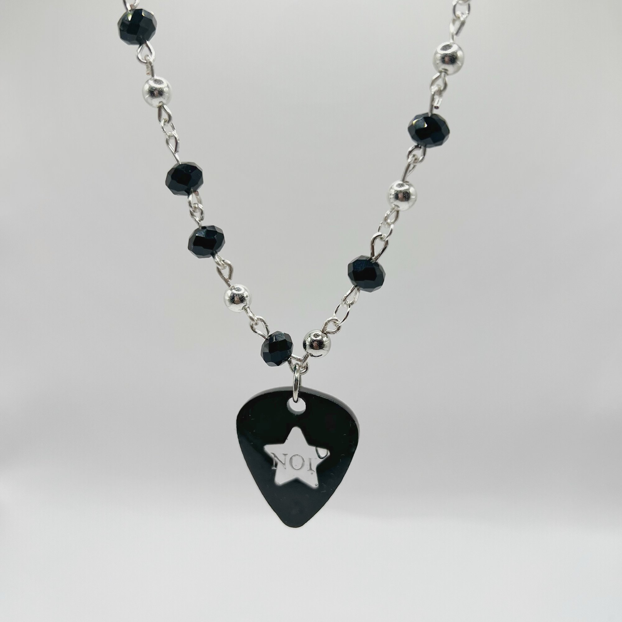 Black and silver beaded necklace inspired by Hongjoong N01