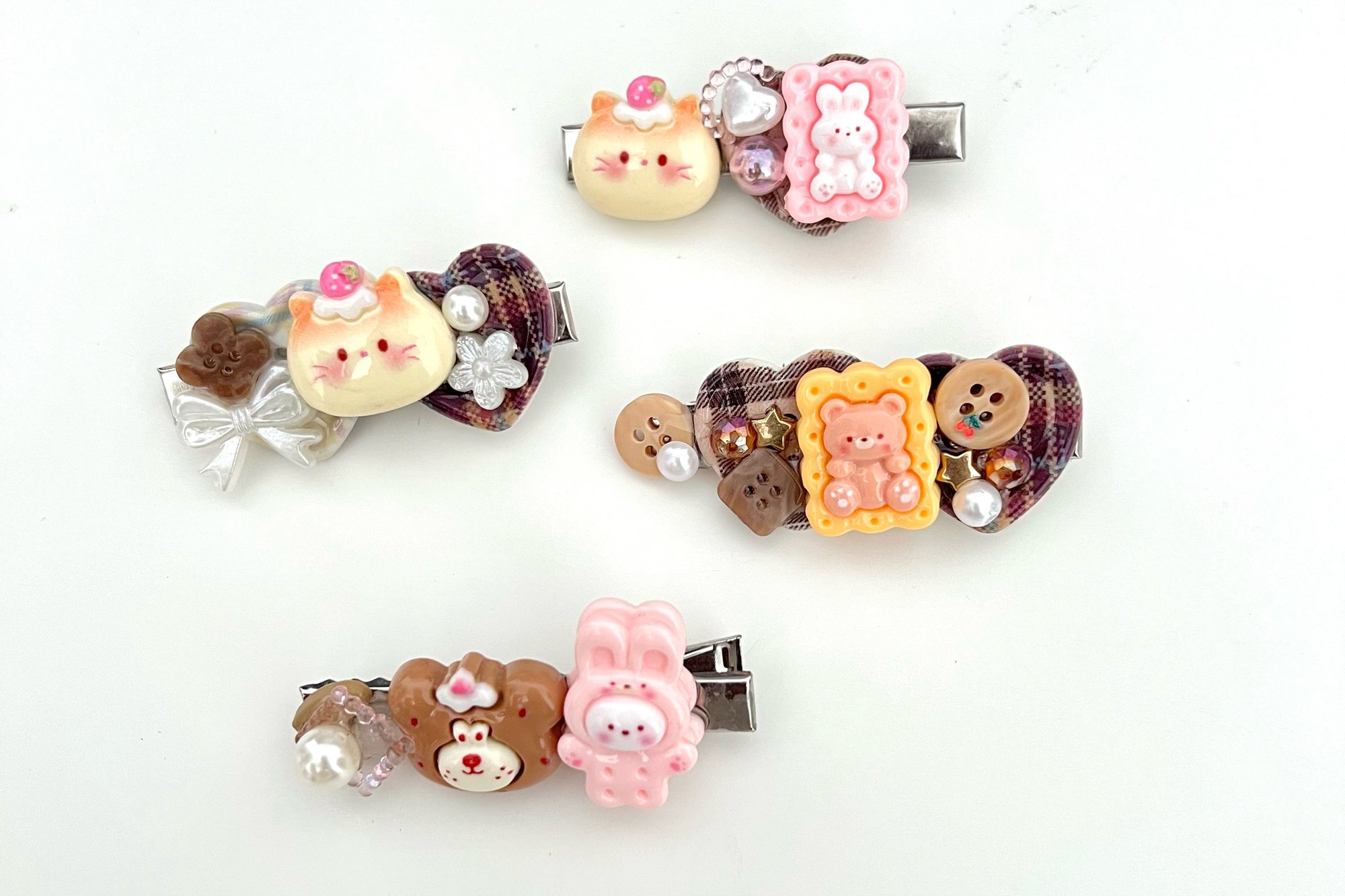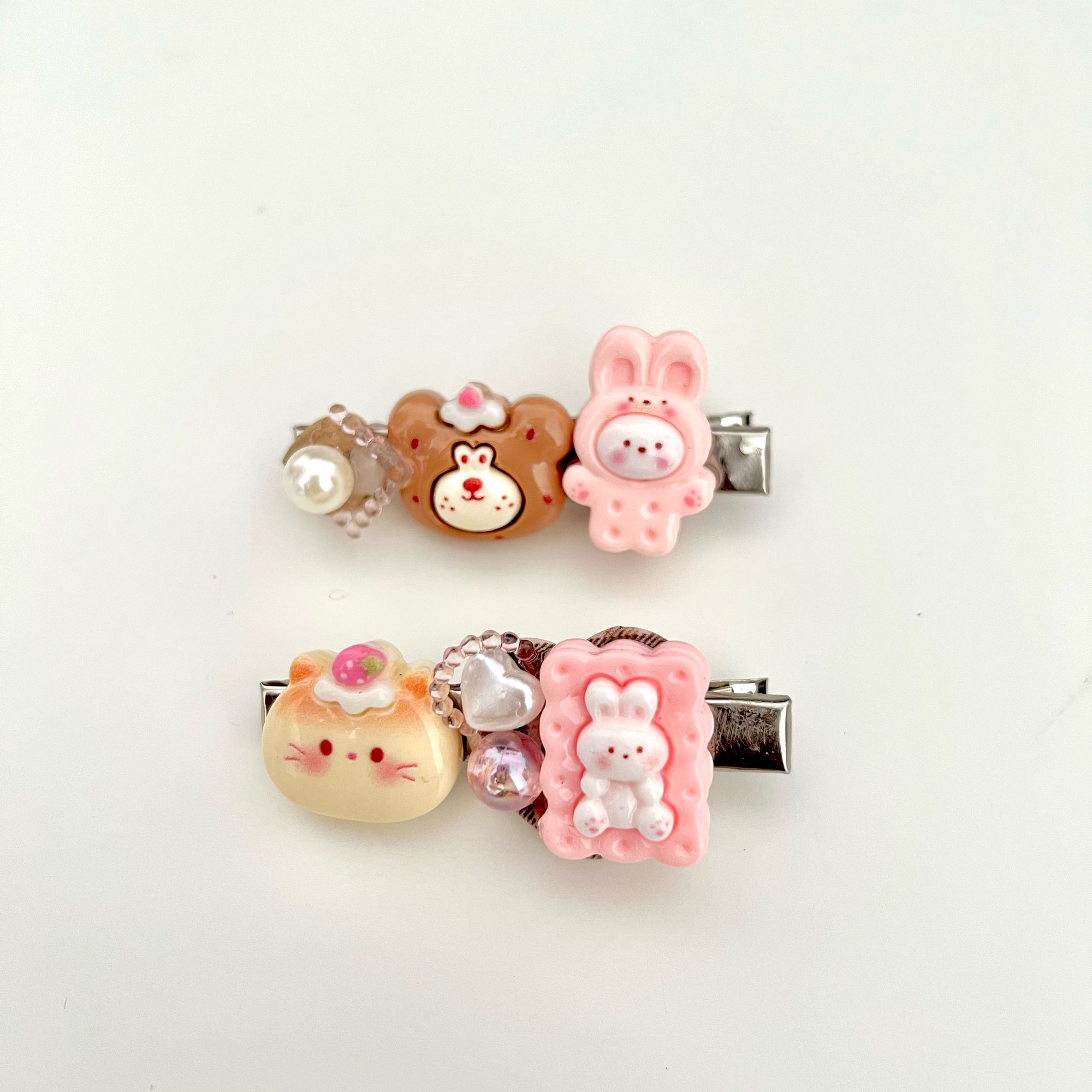 This playful hairclip features a cute bear button centerpiece, accented with delicate beads and resin details. With soft pastels and a sweet tea party vibe, it's perfect for adding a touch of whimsy to any look.